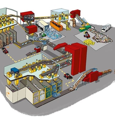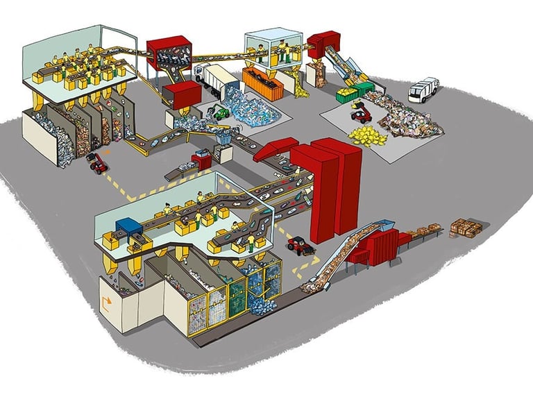 Esta etapa es la primera, al llegar al sitio: Clasificar y separar cada tipo de residuos. Puede ser manual, hasta completamente automatizada, con robots, detectores usando inteligencia artificial, y reconocimiento de cada tipo de residuos.